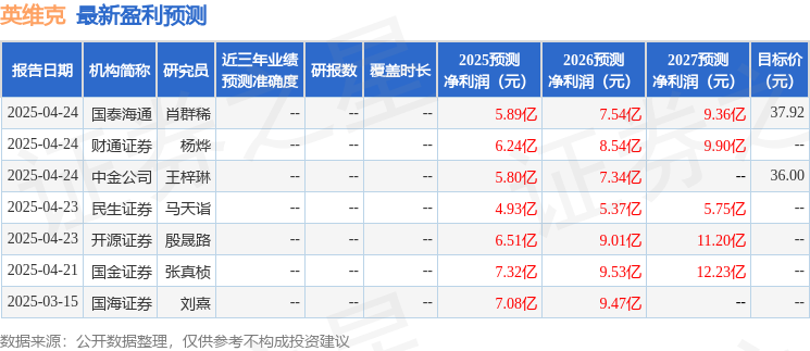 中国银河(601881)证券股份有限公司赵良毕近期对英维克(002837)进行研究并发布了研究报告《2024年年报及1Q25季报业绩点评:利润率短期承压,国内市场需求向好》,给予英维克买入评级。